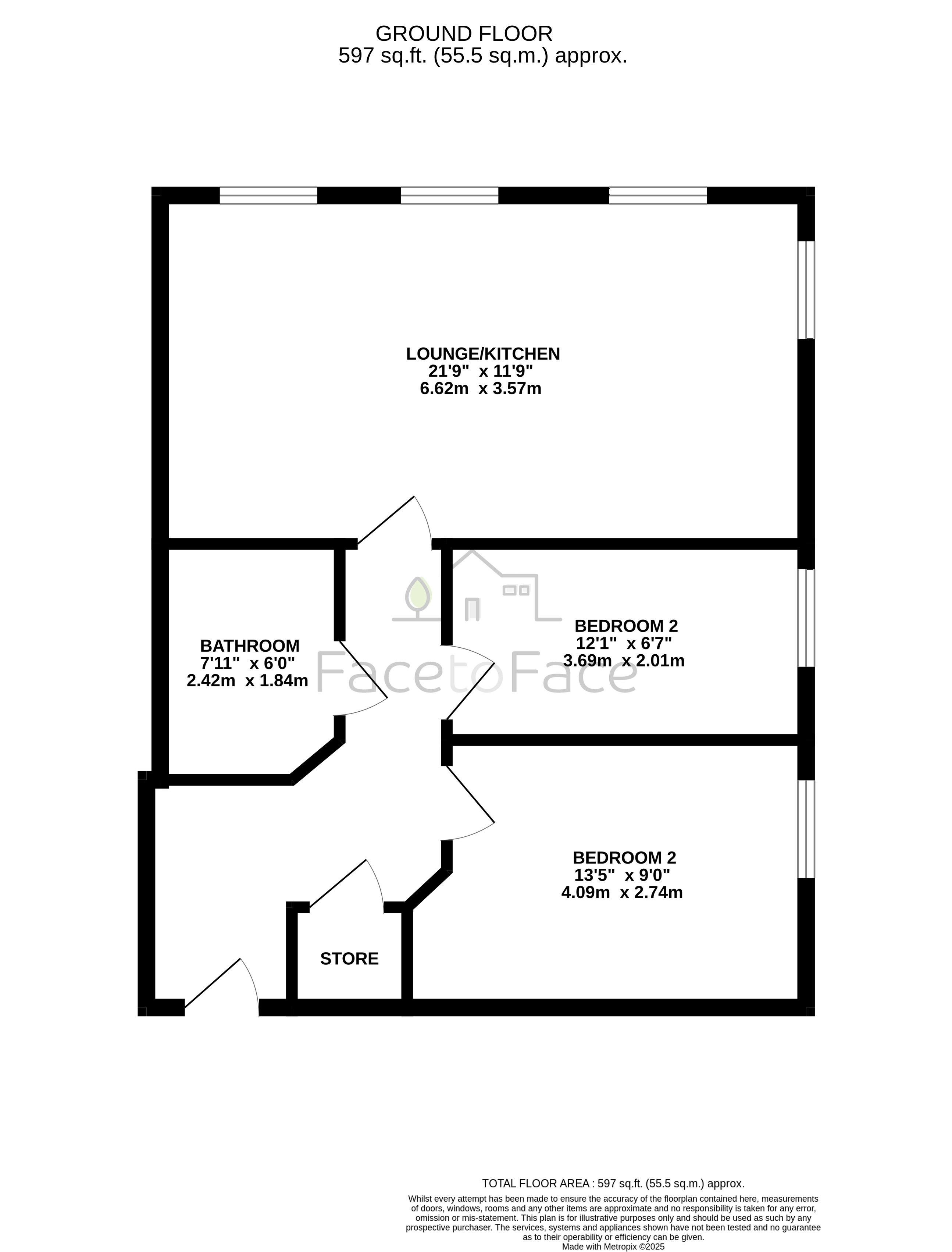 Dimensions: 6' 1" x 7' 11" (1.85m x 2.41m)