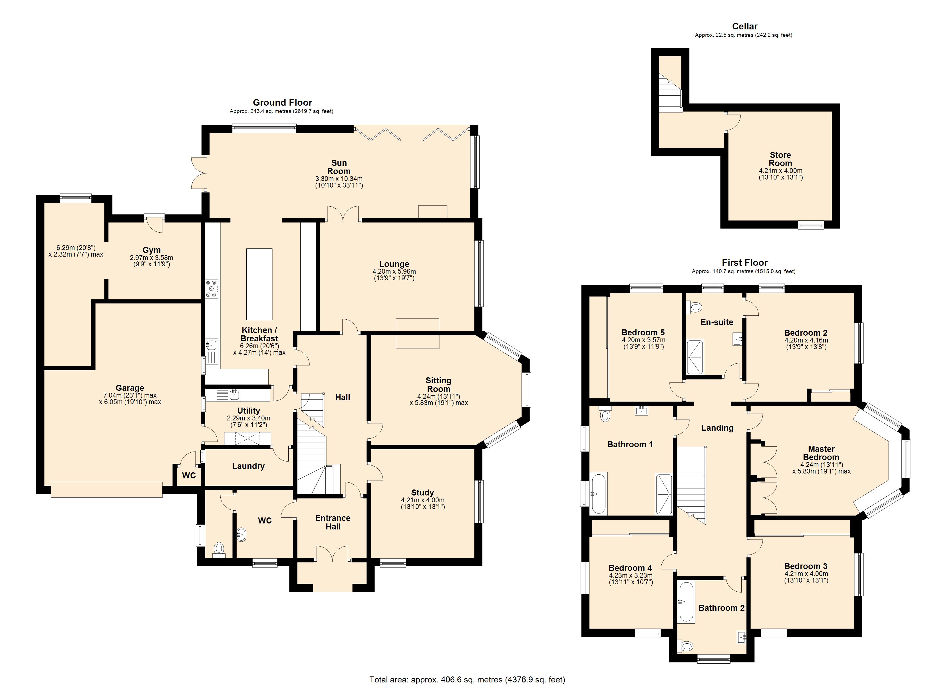 GROUND FLOOR – As you enter the property the large vestibule with original doors and ornate windows instantly welcomes you. There is a traditional cloaks room to the side. The reception hall has a returning stair case with a spindled balustrade to the first floor gallery style landing. The receptions are perfectly designed and decorated to enhance a function for each room as each one echoes its own personality. The study is already set for business as you will see. The sitting room is somewhere to put your feet up, and enjoy the roaring fire. The day lounge is again a place where the family may gather to catch up after the evening meal, still enjoying the sumptuous theme and with perhaps a more modern flair. From this lounge is access into the sun room with bi-folding doors, which is perfect if you are entertaining or is just the best place for an early morning coffee. The breakfast kitchen which is accessed from the hall and the sun room, is beautifully fitted with a breath taking selection of wall and base units, in-built appliances and matching Corian work surfaces. From here is access into the Utility and Laundry Room and personal access into the large double garage. Within here is a separate gym and a separate w.c.
